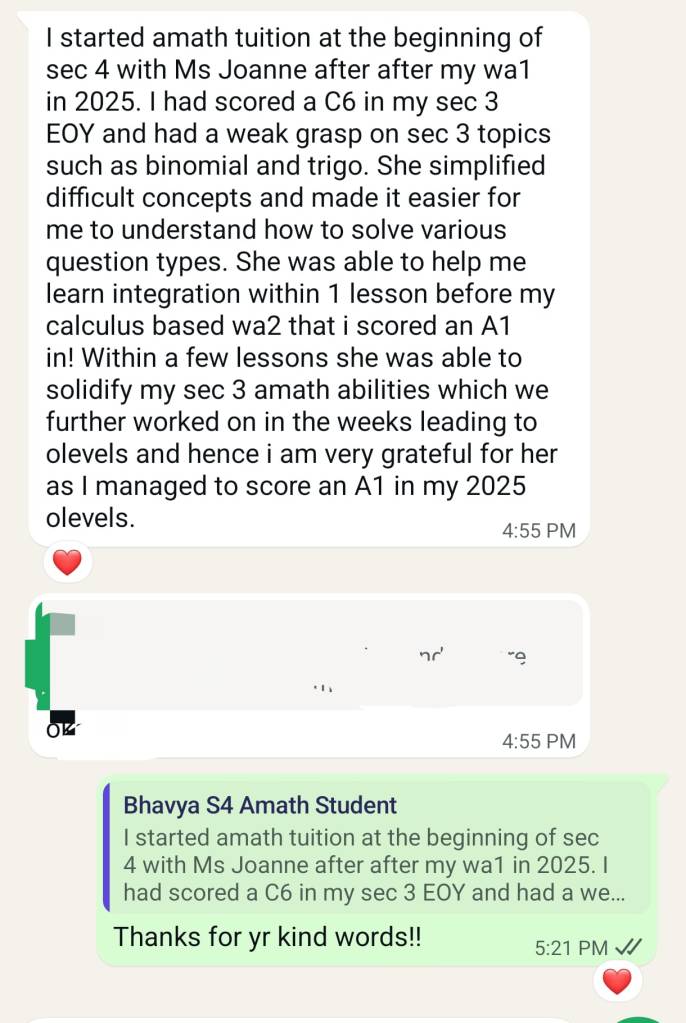 Improvement from C to A1 for Amath in O levels